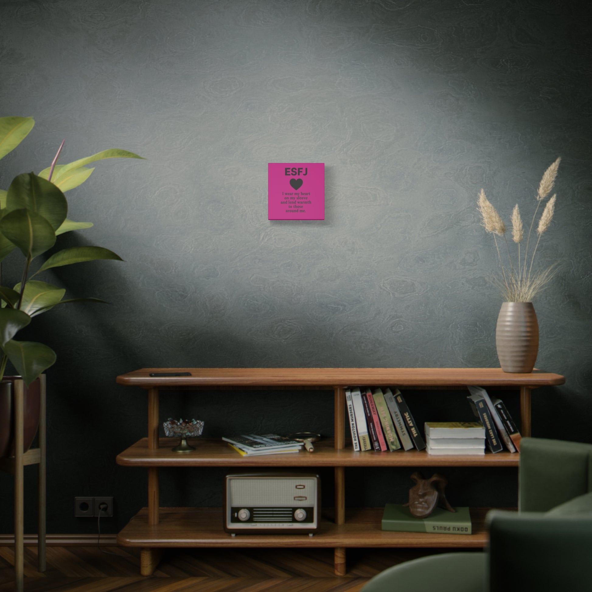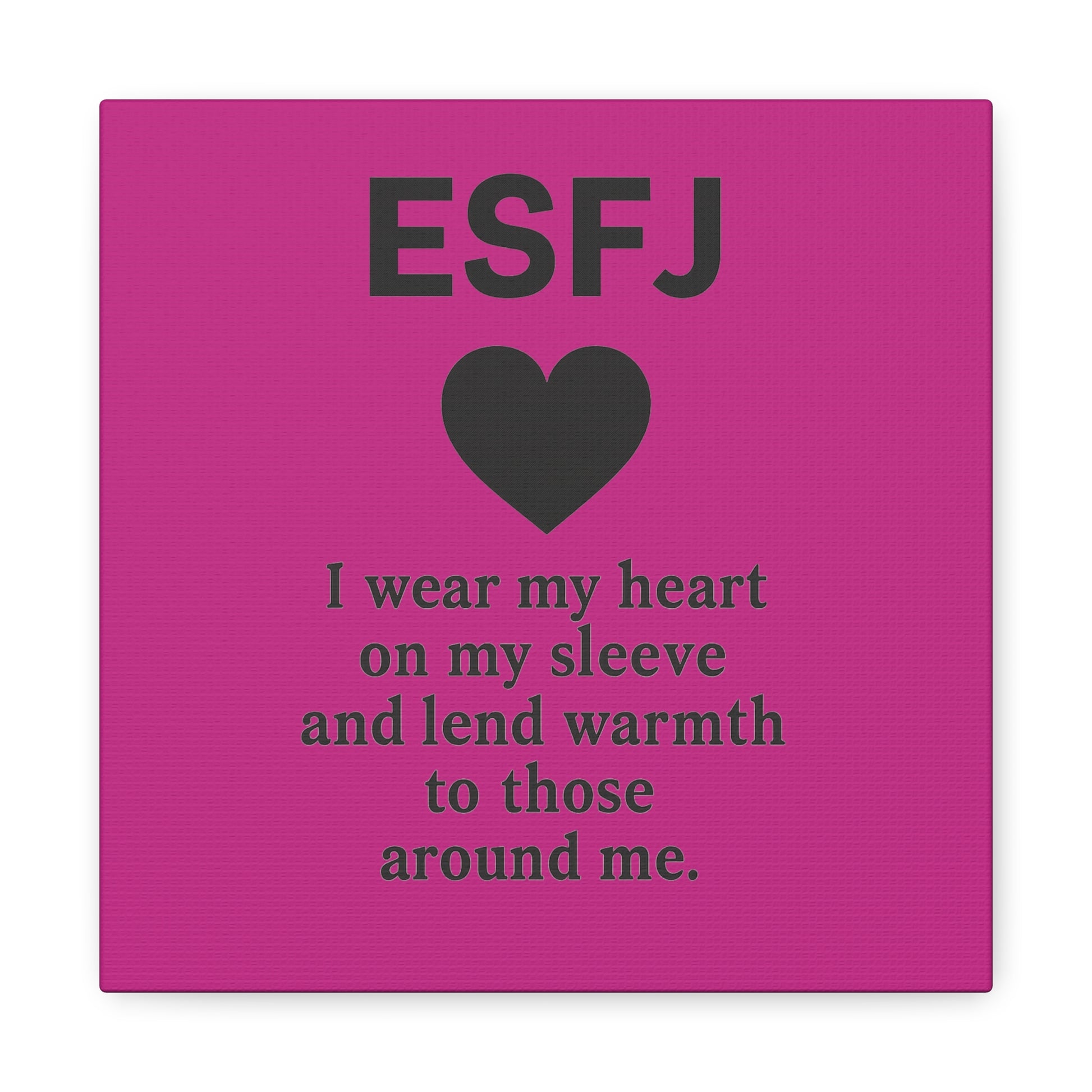 Lead from the heart. This ESFJ matte canvas features a bold magenta backdrop and a centered black heart, a tribute to the nurturing provider who thrives on connection, care, and emotional presence. Designed for the gracious host who radiates empathy and uplifts others, this canvas is a proclamation of strength through kindness.