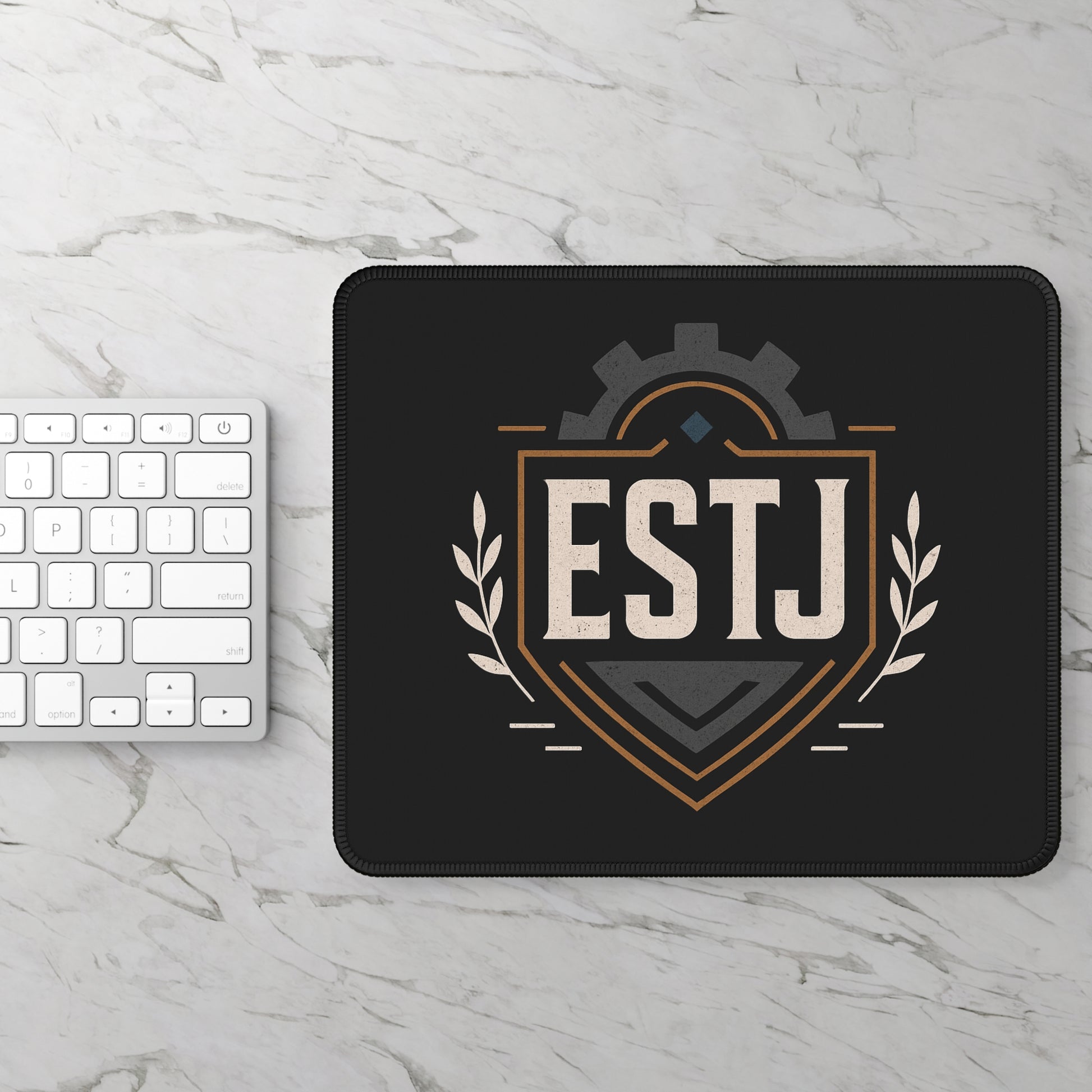 Stick your standards where they apply. This ESTJ gaming mouse pad features an industrial shield with gear and laurel sprigs, a tribute to the pragmatic supervisor who thrives on duty, organization, and unwavering principles. Designed for the steadfast taskmaster who engineers efficiency, this pad adds a crest of grounded authority to your battlestation.