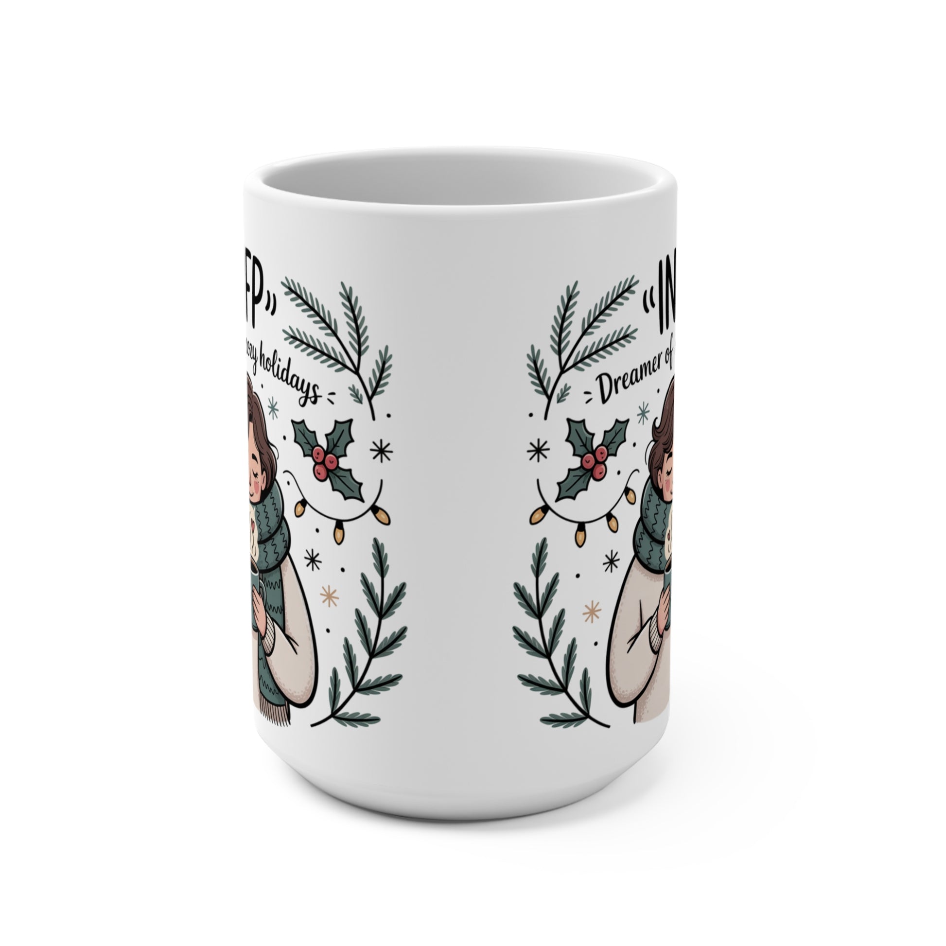 Wrap your hands around a moment of quiet magic. This INFP holiday mug is crafted in glossy white ceramic and sized at 15oz, perfect for sipping cocoa while daydreaming by the fire. Featuring a soft illustration of a bundled-up dreamer surrounded by stars and winter foliage, it’s designed for the gentle soul who finds wonder in every snowflake and meaning in every moment.