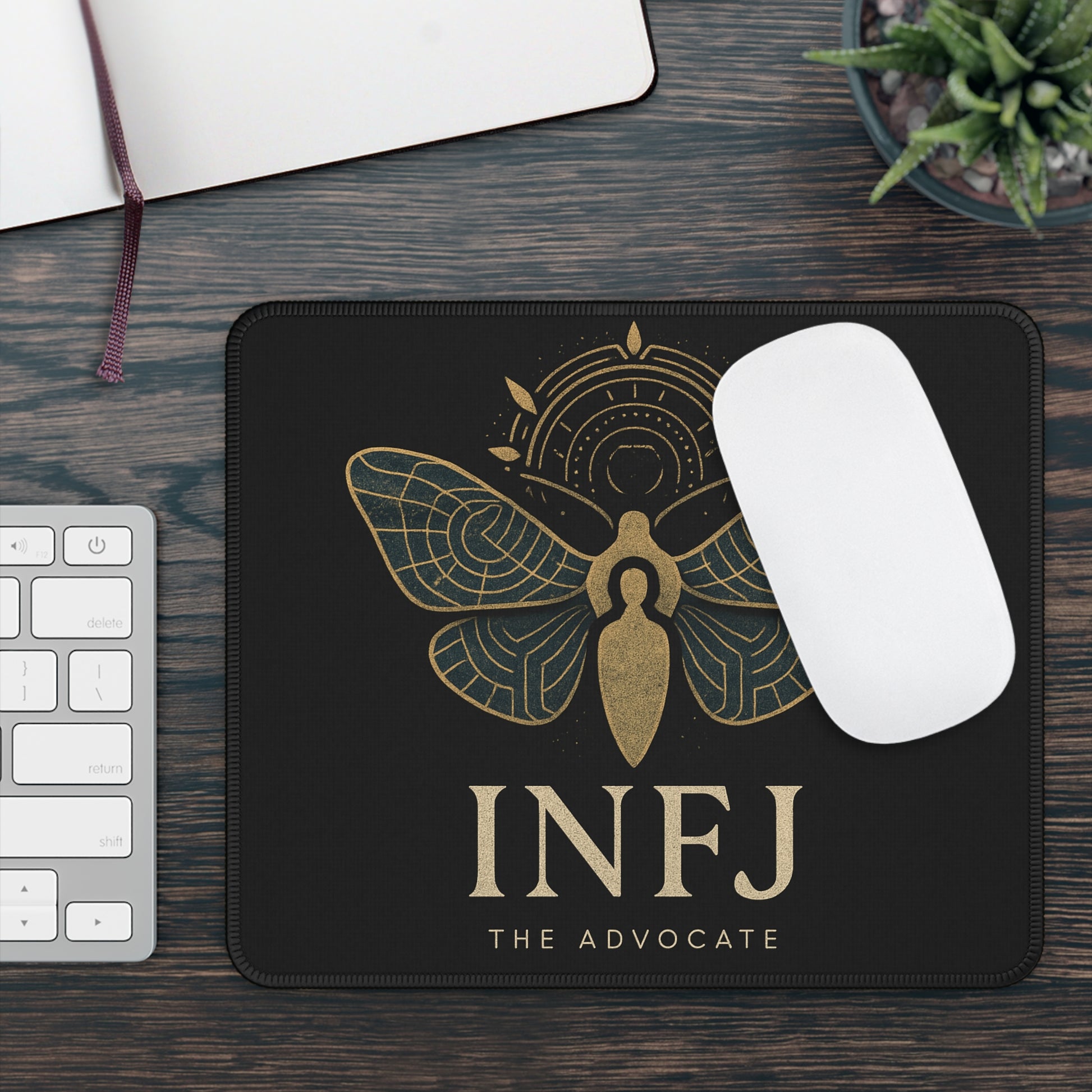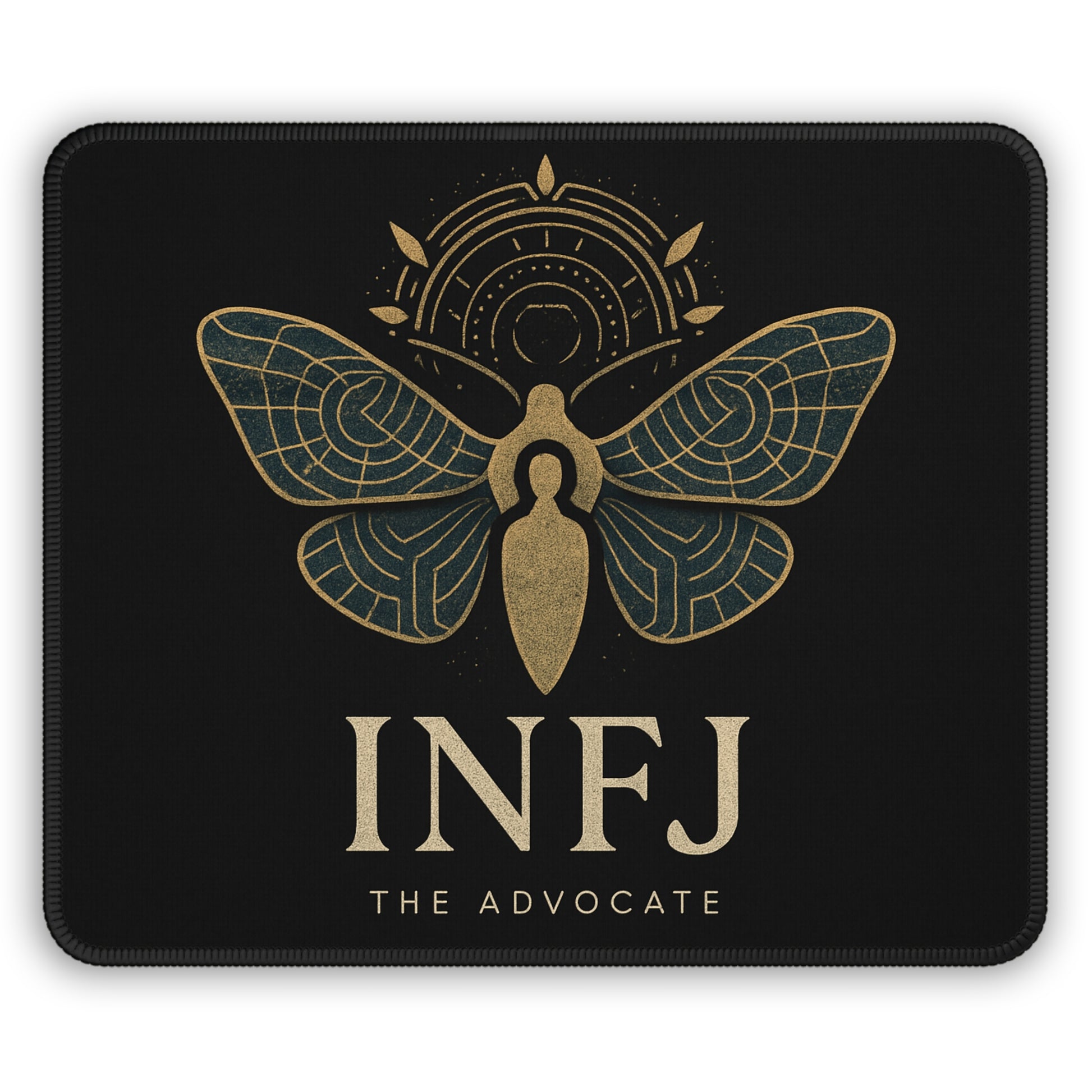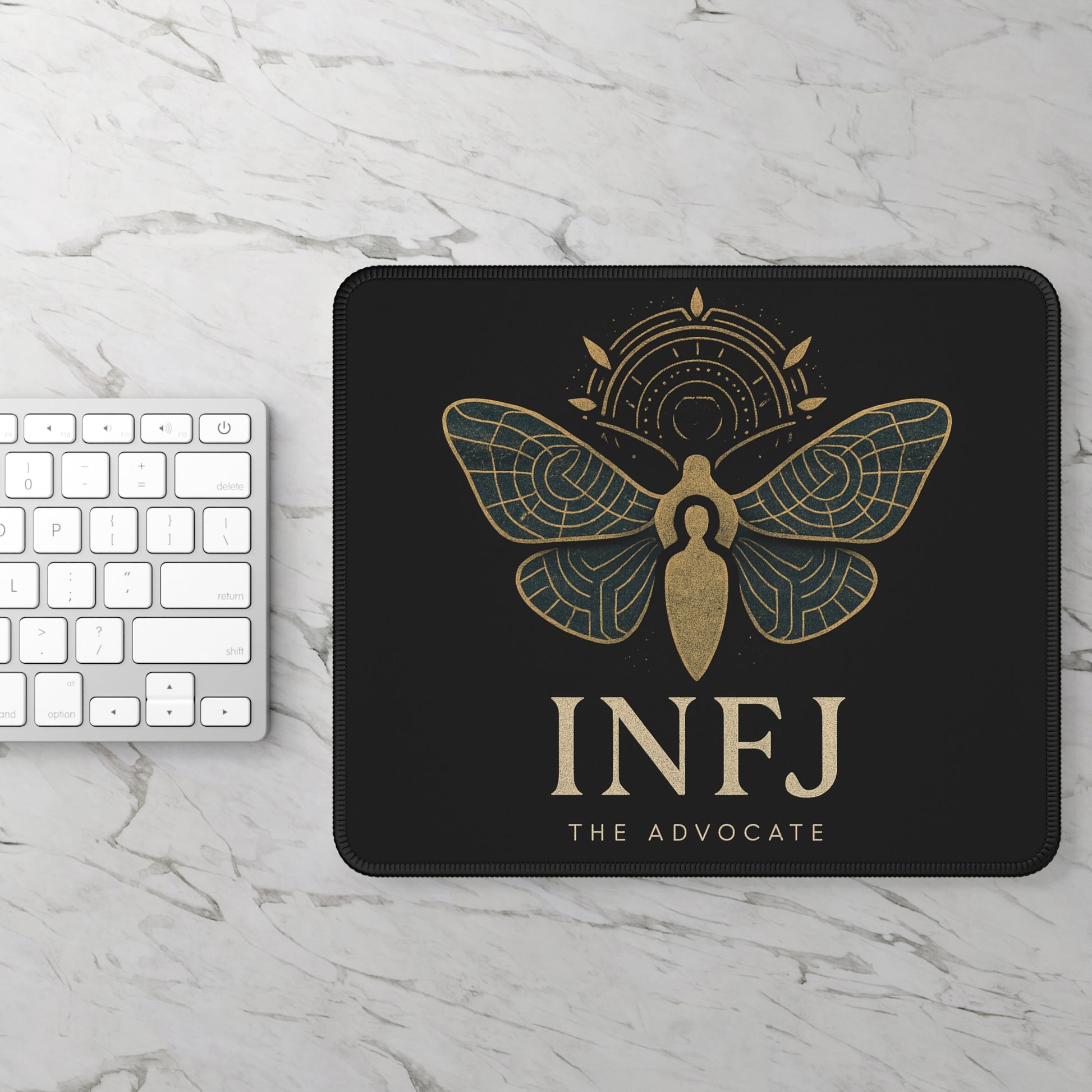 Let your thoughts land where they lift. This INFJ mouse pad features a delicate butterfly crest with soft curves and subtle glow, a tribute to the visionary empath who thrives on meaning, depth, and quiet transformation. Designed for the introspective guide who sees the unseen and speaks with soul, this pad adds a whisper of elegance to any workspace.
