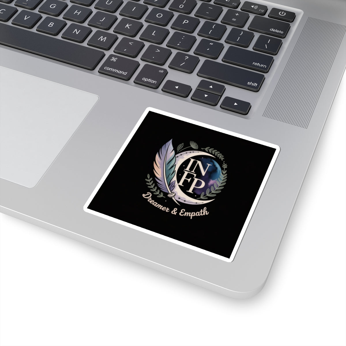 Stick your softness where it shines. This INFP kiss-cut sticker features a graceful emblem of feathers and foliage encircling the type’s initials, a quiet tribute to the dreamer who feels deeply and sees beauty in the unseen. Designed for the introspective idealist who moves through life with empathy and imagination, this sticker adds a touch of soul to any surface.