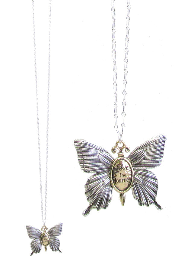 INSPIRATION MESSAGE BUTTERFLY PENDANT LONG NECKLACE - LOVE THE JOURNEY