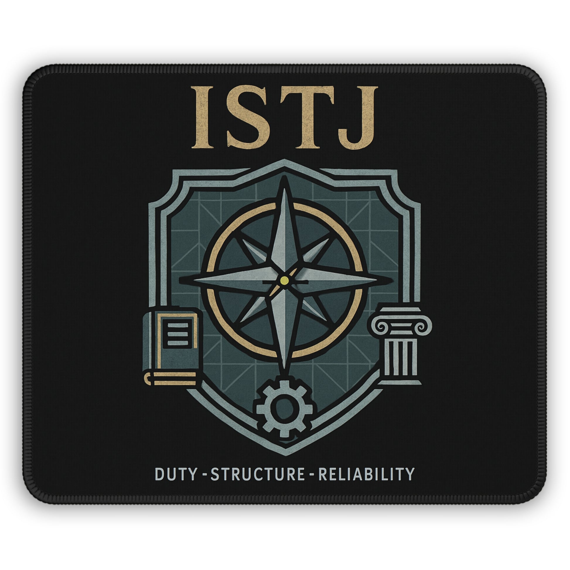 Place your order where it holds. This ISTJ gaming mouse pad features a clean compass emblem with gold and teal accents, a tribute to the steadfast guardian who thrives on structure, responsibility, and quiet precision. Designed for the dependable realist who navigates systems with clarity and honors tradition with purpose, this pad adds a mark of grounded excellence to any workspace.